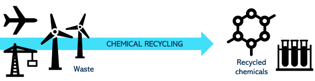 - Using recycled building blocks (e.g. monomers, polyols, oligomers obtained from chemical recycling) as feedstocks for new polymers or resins