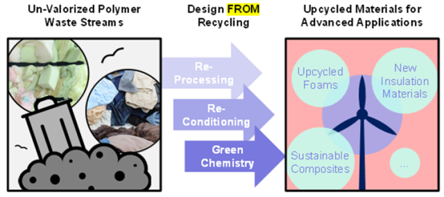 Recovered materials and reaction progress will be characterized using techniques such as FTIR, GPC, GC, NMR, DSC, and TGA to gain insight into depolymerization mechanisms and assess the potential for a closed-loop recycling strategy.